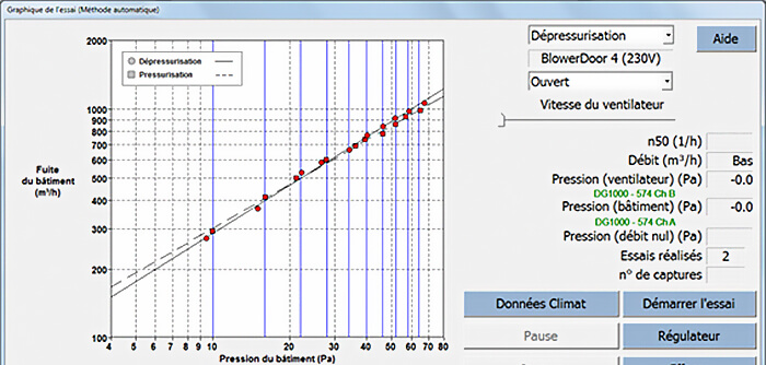 Logiciel TECTITE Express 5.1 pour mesurer l'étanchéité à l'air selon les normes EN 13829, ISO 9972 et le FD P 50-784 avec les systèmes de mesure BlowerDoor Standard et BlowerDoor MiniFan. Logiciel TECLOG MultipleFan pour mesurer les grand bâtiments avec plusieurs ventilateurs BlowerDoor et pour les mesures spéciales.